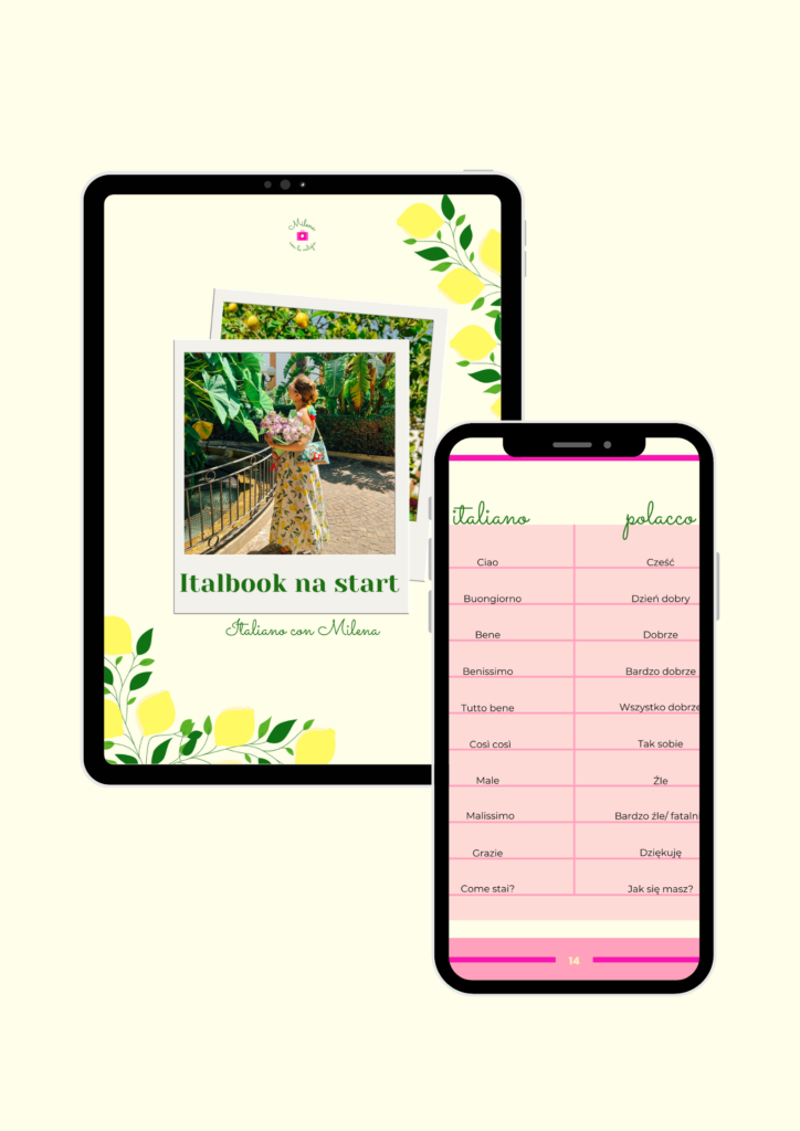 Na stronie sprzedażowej Italbooka znajdziesz też pakiet workbook + konsultacja jednorazowa. To świetna okazja, aby rozwiać wszystkie Twoje wątpliwości do materiału zawartego w workbooku. No i będziesz mieć okazję przećwiczyć na żywo początkowe dialogi (przedstawianie się, mówienie o sobie itd.).